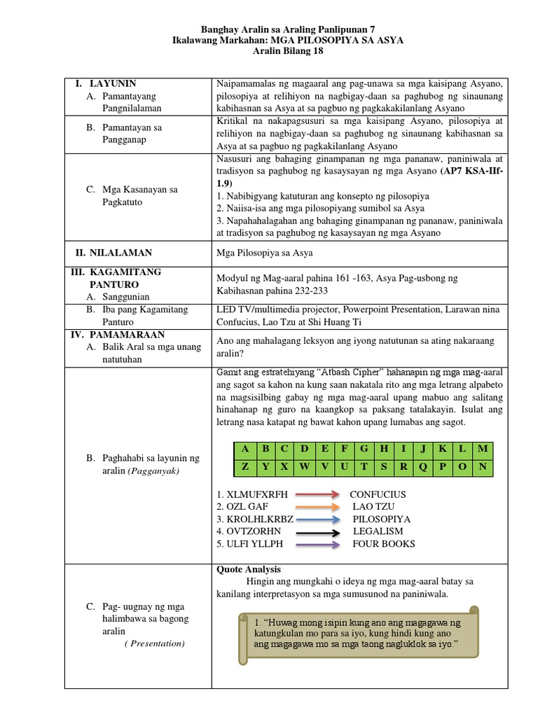 Ikalawang Markahan Aralin Bilang 18 Mga Pilosopiya Sa Asya Docx