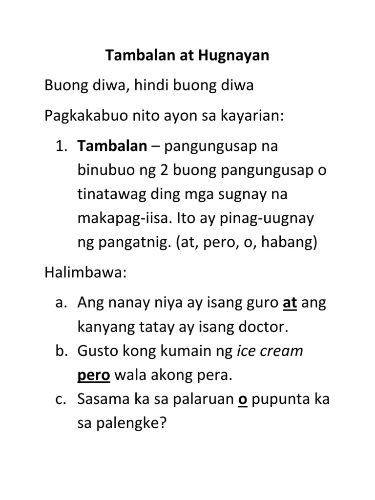 This 10-item worksheet asks the student to determine whether a sentence is hugnayan complex or langkapan compound-complex. 2Uunlad ka kung may sikap at tiyaga ka. Feb 23 2018 Hugnayang pangungusap binubuo ng isang sugnay na makapag-iisa at isang sugnay na di-makapag-iisa na may ginagamit ding mga pangatnig bilang pang-ugnay sa pangungusap tulad ng kung nang bago upang kapag kaya dahil sapagkat datapwat.