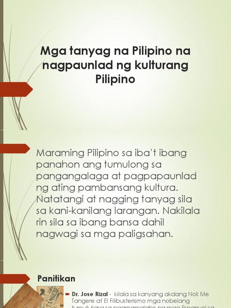 Mga Tanyag Na Pilipino Na Nagpaunlad Ng Kulturang