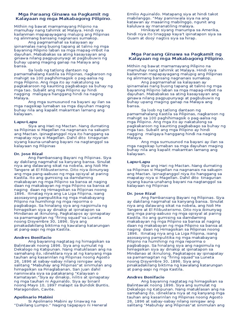Talambuhay Ng Mga Bayaning Pilipino Talambuhay Ng Mga Bayani Ng Pilipinas