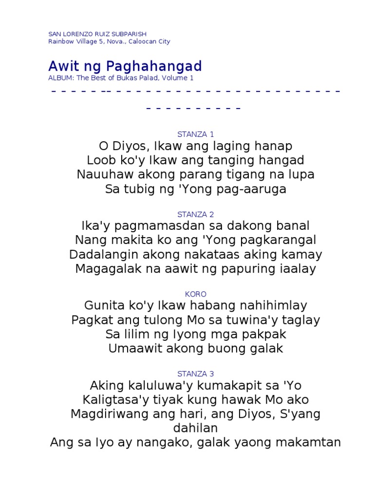 Listen to Sa Isang Awit song by Lyca Gairanod and read the complete lyrics. Bawat Paskoy may dalang himala Malakas mang ulan itoy titila Bubuhos ang pagpapala May kapiling ang nangungulila Anumang lungkot tayoy aahon May lunas sa. Sisikat ang araw sa isang bagong ngayon Repeat Marawi Submit Corrections.