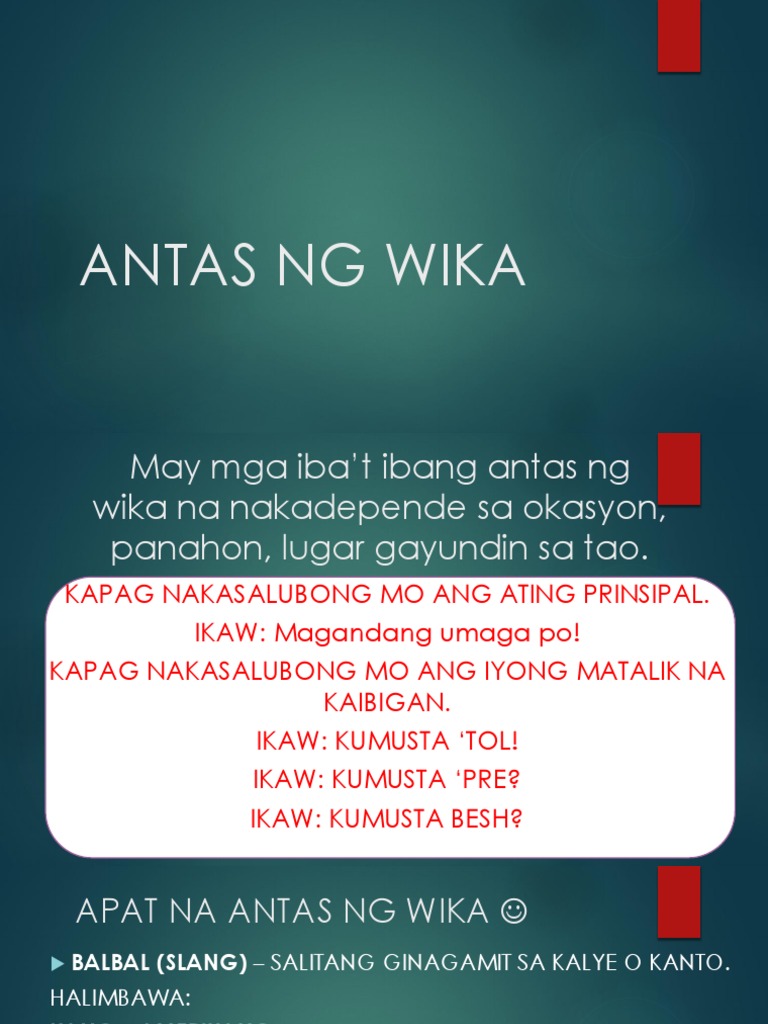 Antas Ng Wika Halimbawa At Kahulugan