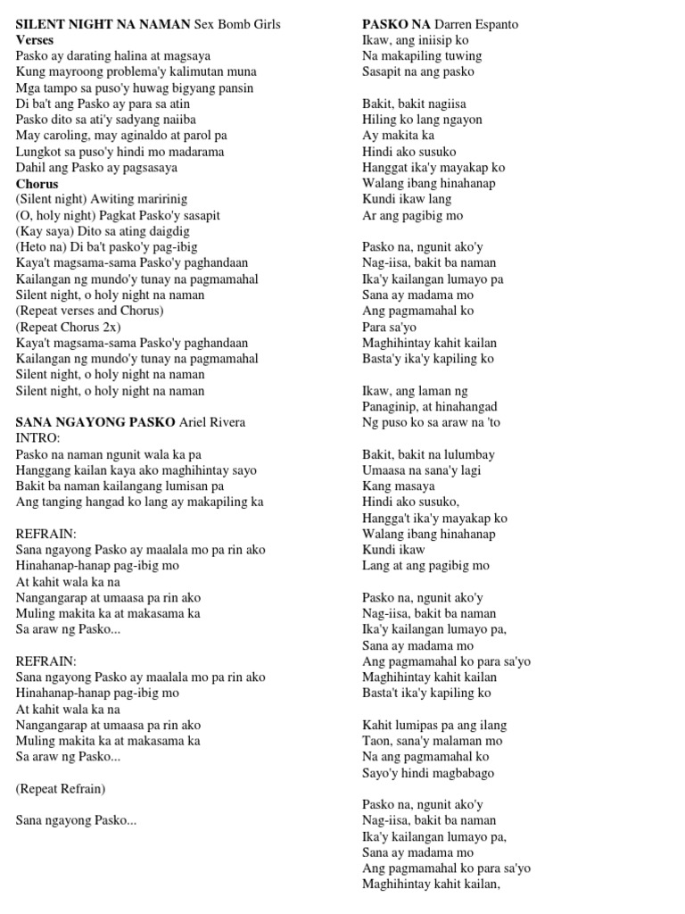 When i met you 056. Nov 15 2017 Silent night Awiting maririnig O holy night Pagkat Paskoy sasapit Kay saya Dito sa ating daigdig Heto na Di bat paskoy pag-ibig Kayat magsama-sama Pasko ay paghandaan Kailangan ng mundo ay tunay na pagmamahal Silent night o holy night na naman Kayat magsama-sama Pasko ay paghandaan Kailangan ng mundo ay tunay na pagmamahal. Silent Night Na Naman MP3 Song by Bayani from the Tagalog movie Todo Bigay.